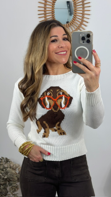 Jersey de punto con dibujo en la parte delantera en color blanco. Talla única válida desde la 36 hasta la 44.