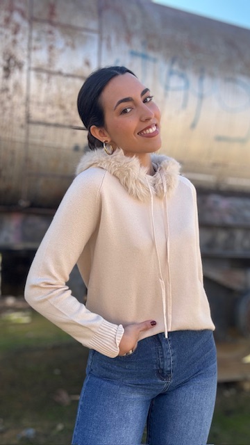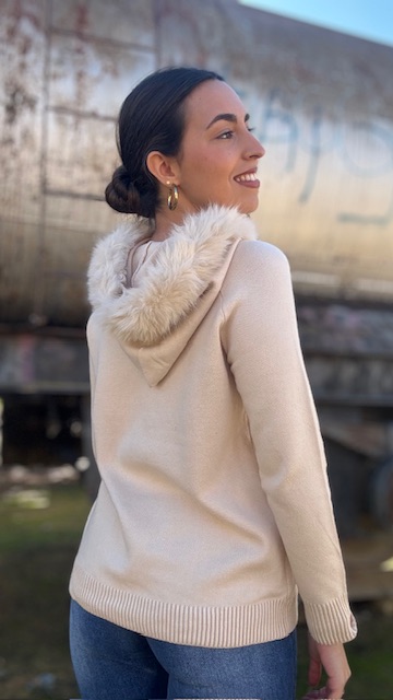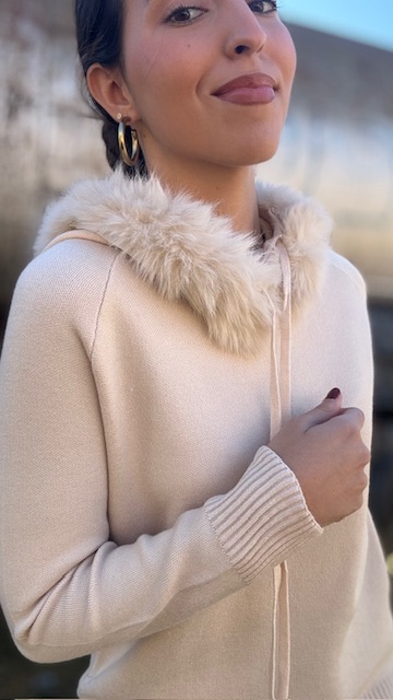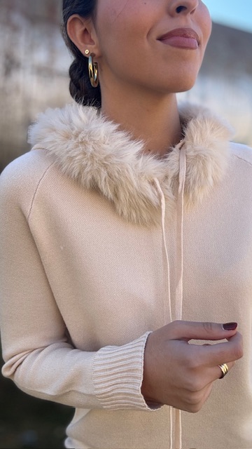 Jersey confeccionado en tejido de punto con gorro con pelo sintético. Talla única válida desde la 36 hasta la 44.