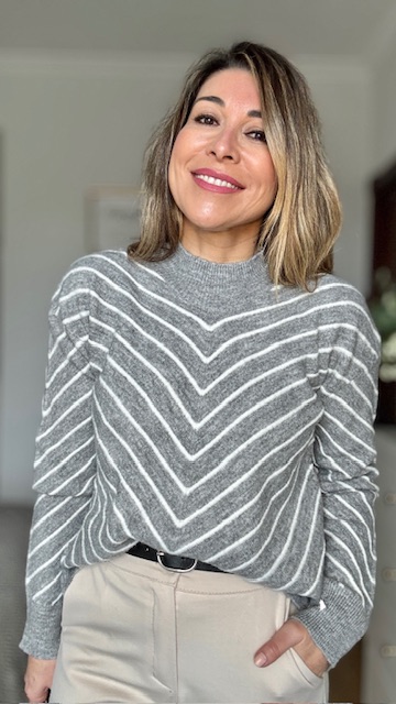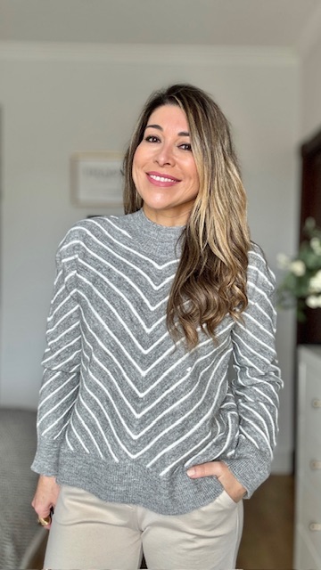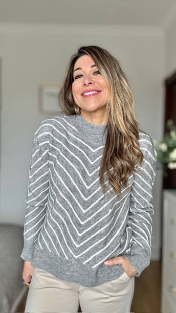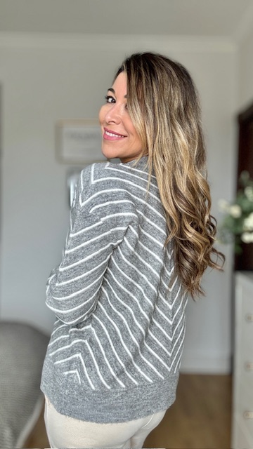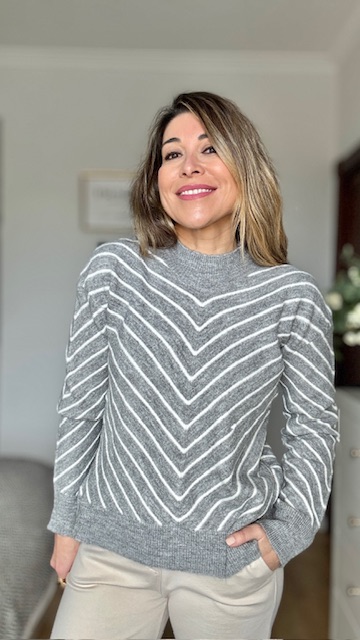 Jersey de punto en color gris con rayas en color beige. Talla única válida desde la 36 hasta la 44.