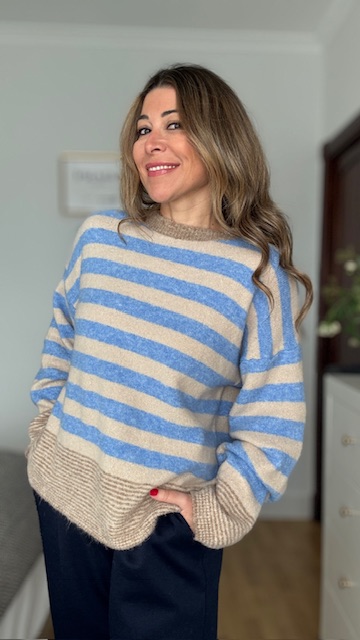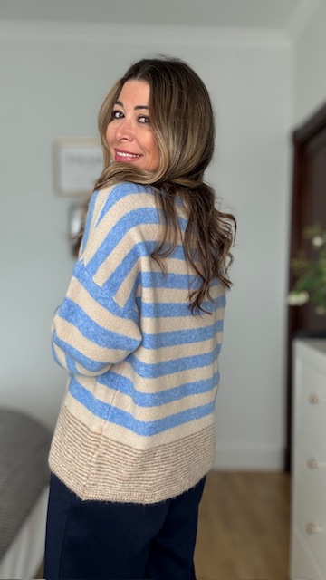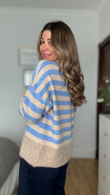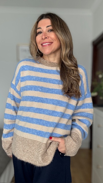 Jersey con estampado de rayas combinando el color azul con el camel. Talla única válida desde la 36 hasta la 44.