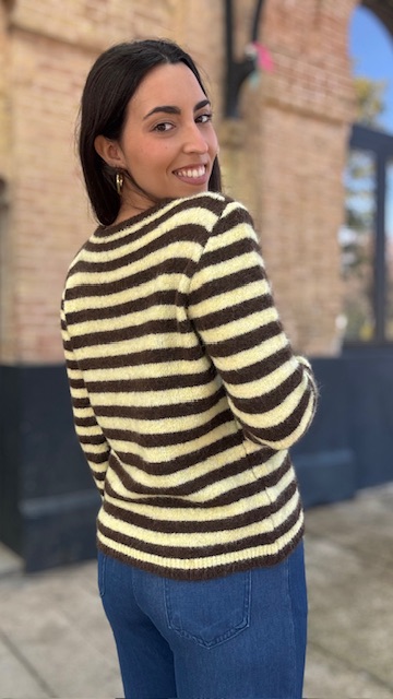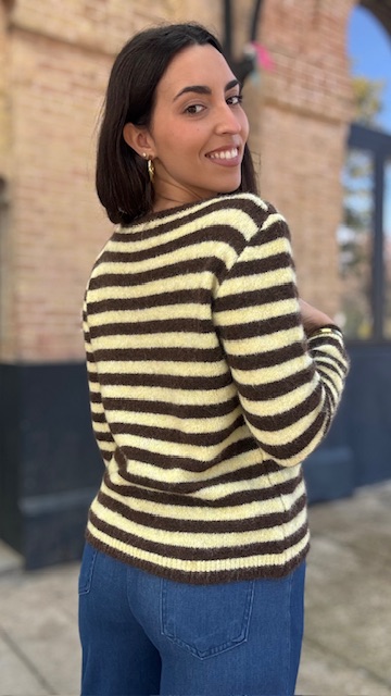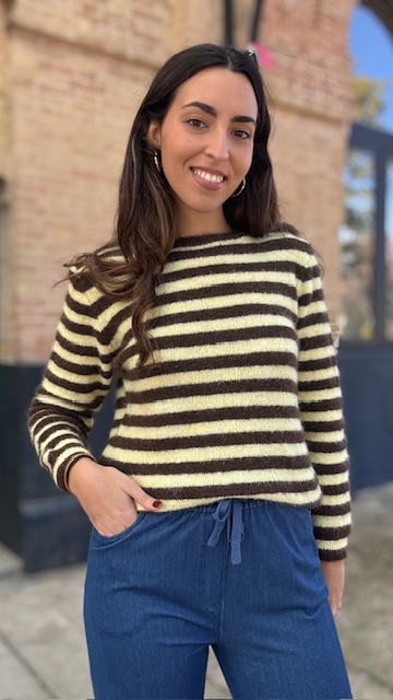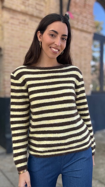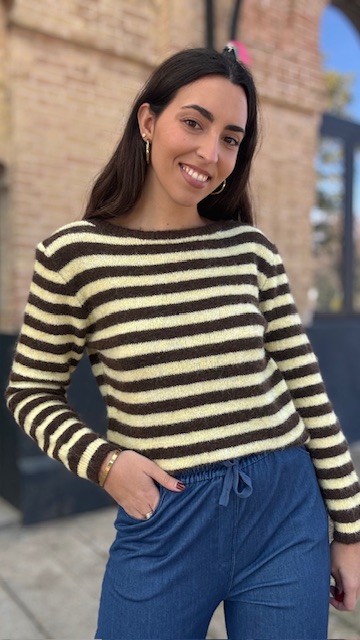 Jersey de rayas en color marrón y amarillo. Talla única válida desde la 36 hasta la 44.