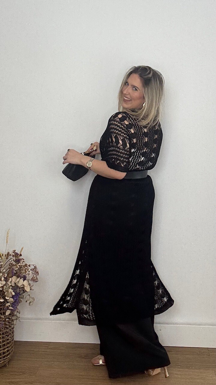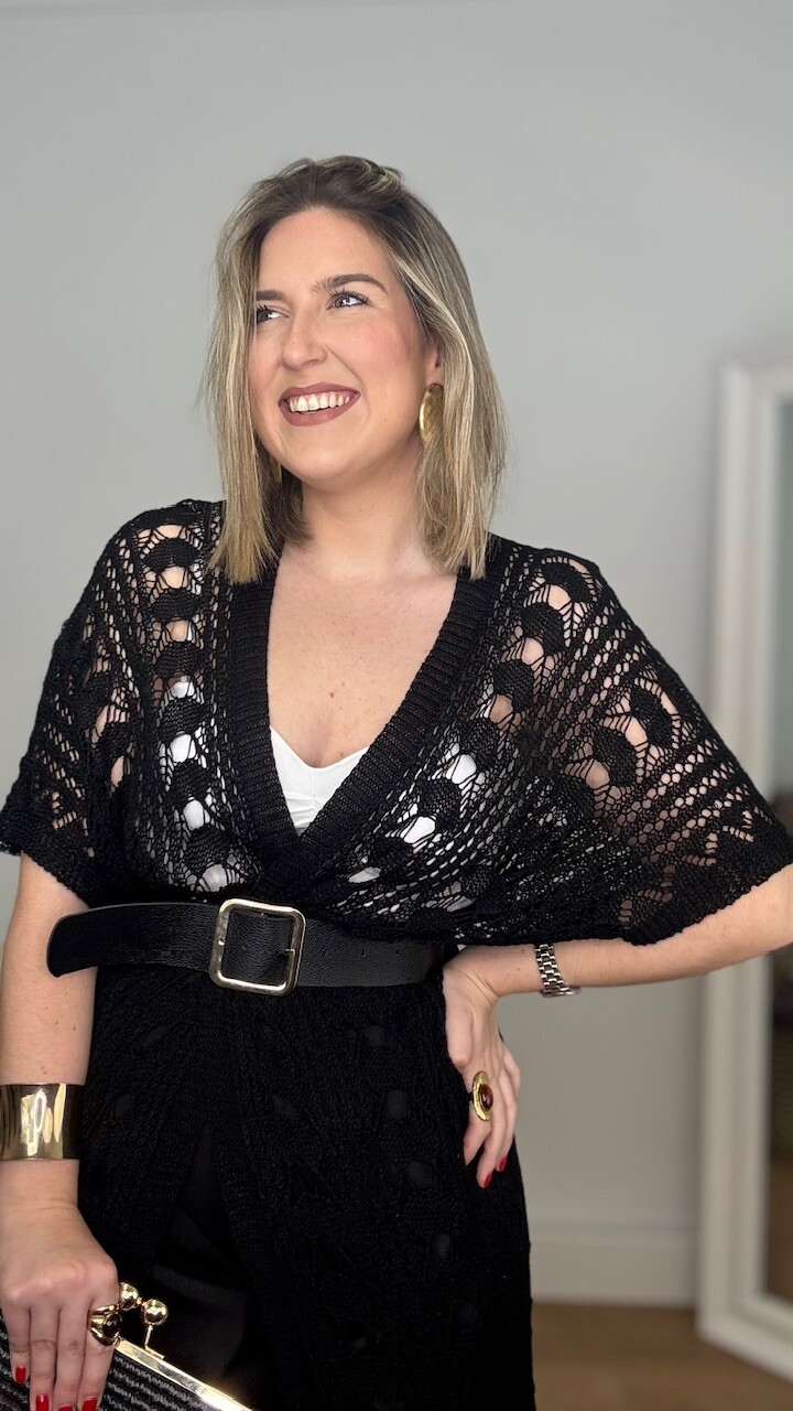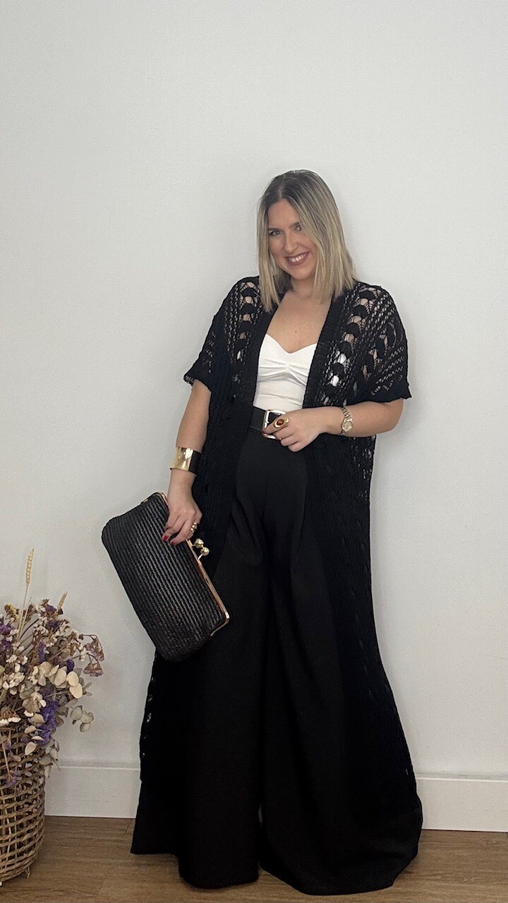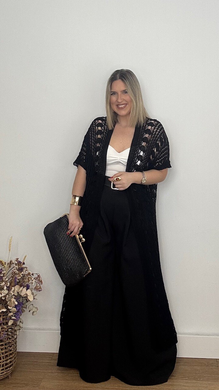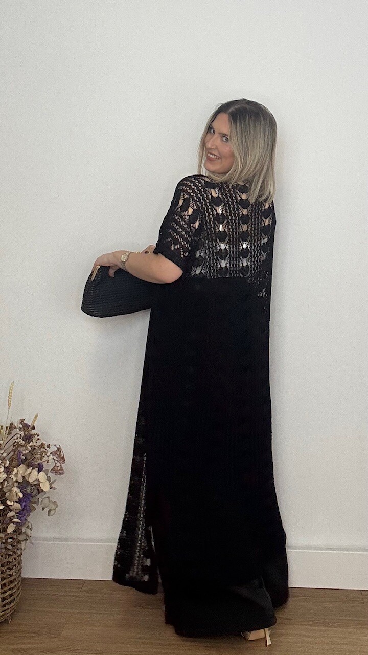 Kaftan Kimono largo confeccionado en tejido de hilo en color negro. Talla única válida desde la talla 36 hasta la 44/46.