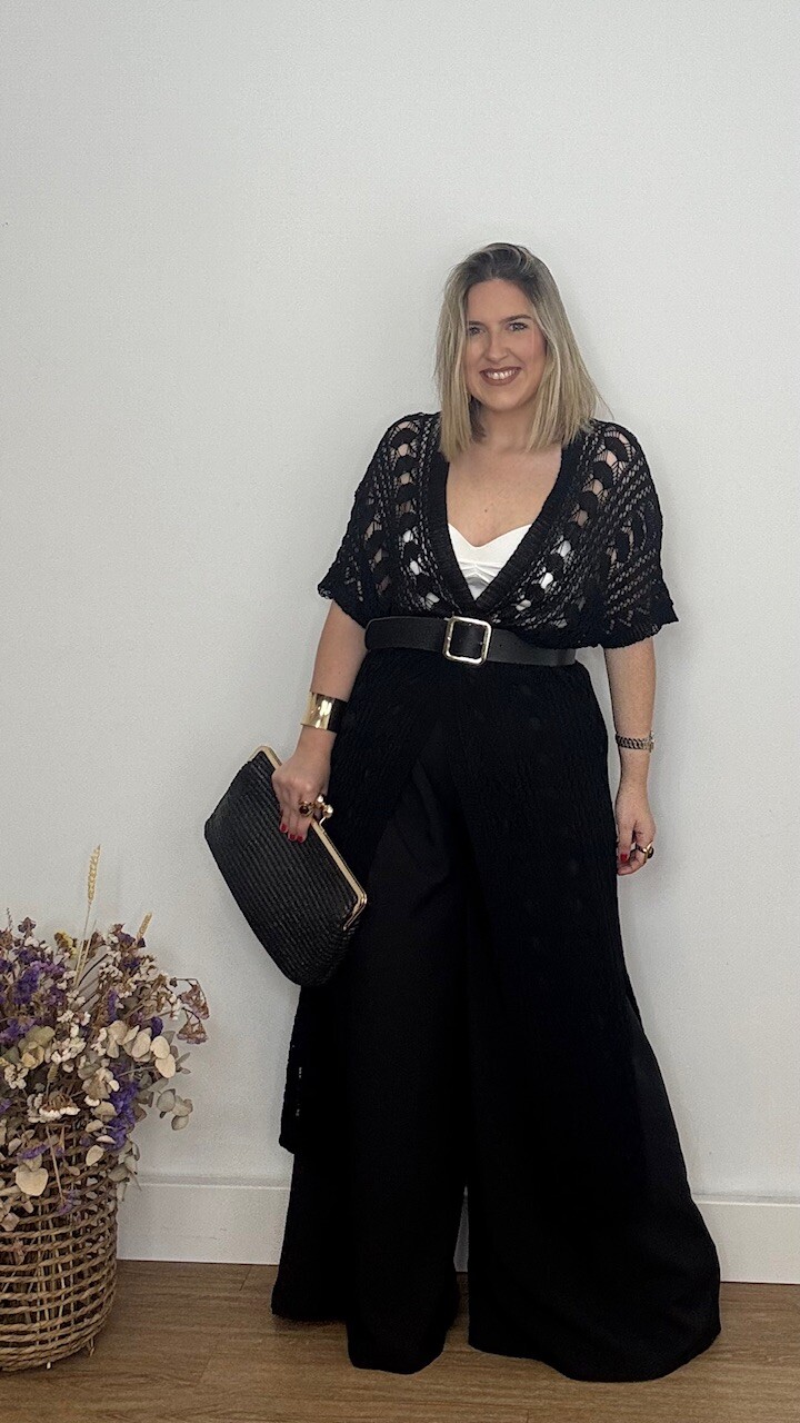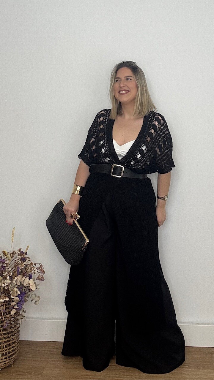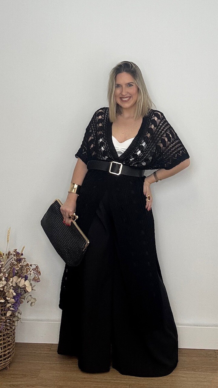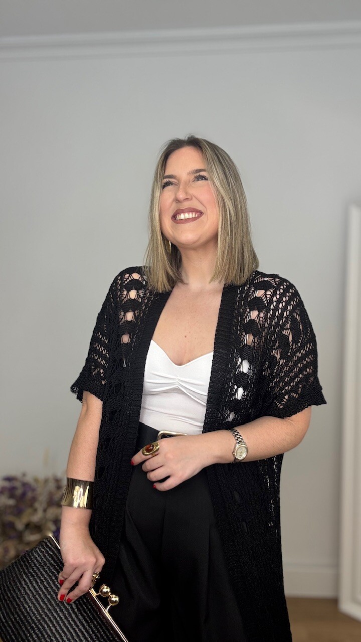 Kaftan Kimono largo confeccionado en tejido de hilo en color negro. Talla única válida desde la talla 36 hasta la 44/46.
