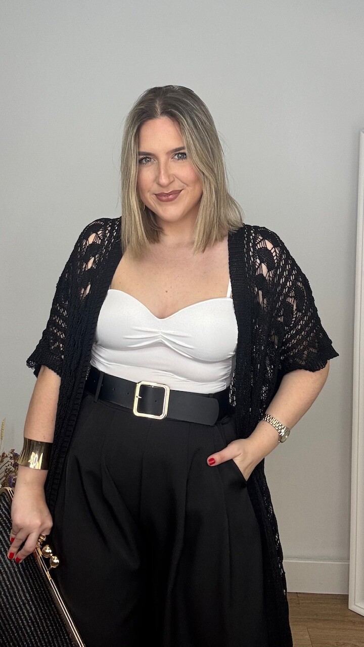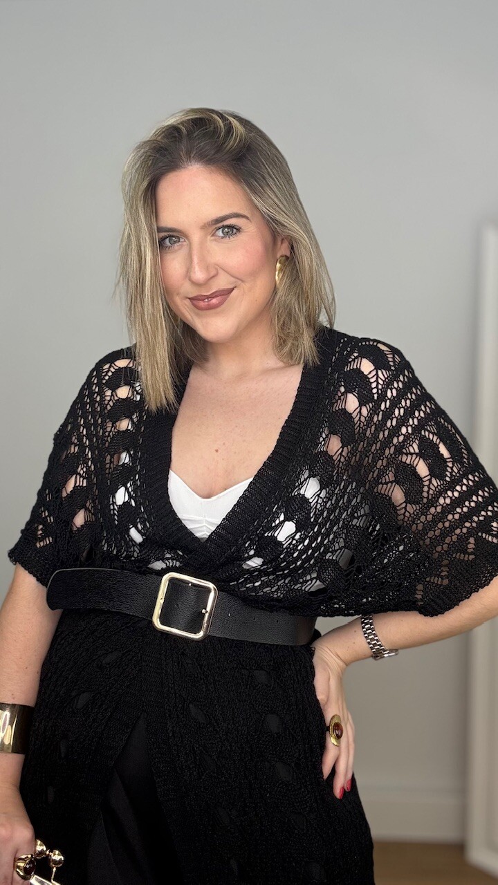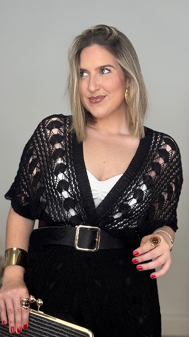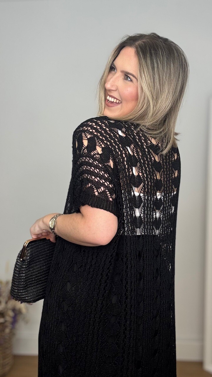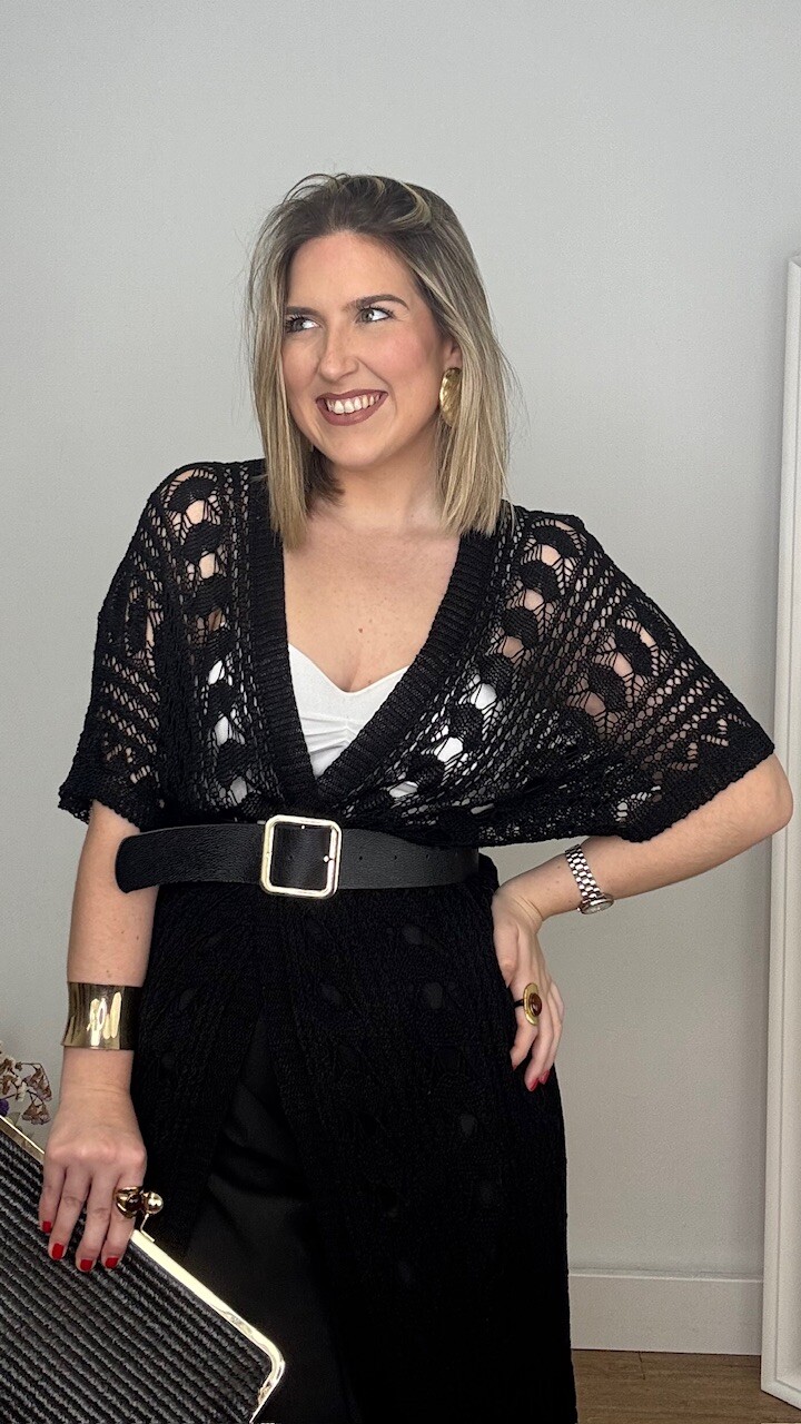 Kaftan Kimono largo confeccionado en tejido de hilo en color negro. Talla única válida desde la talla 36 hasta la 44/46.