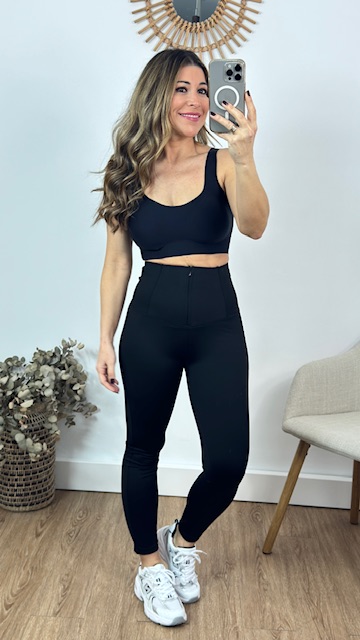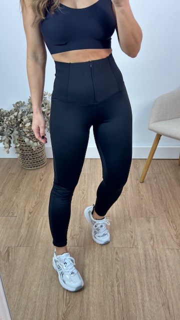 Leggins con faja reductora con cremallera en color negro. Disponible por tallas.
