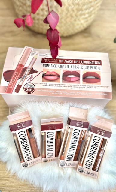 Lip combo efecto brillo con duración 24 horas. Disponible en varios colores.