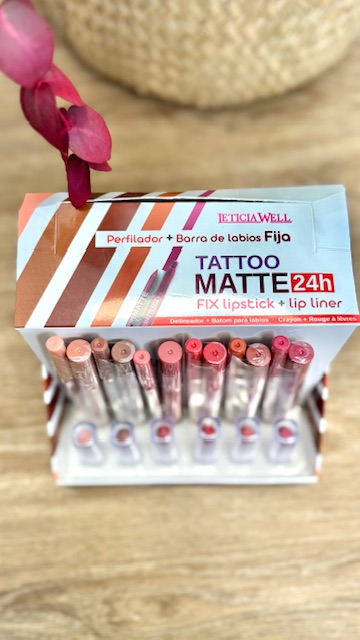 Lip combo efecto matte duración 24 horas. Disponible en diferentes colores.