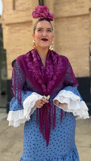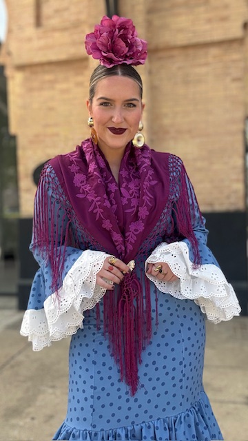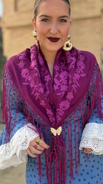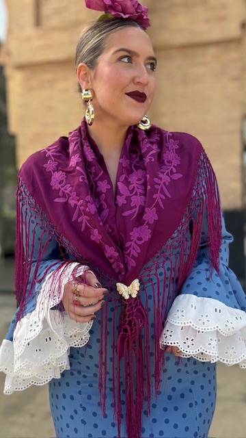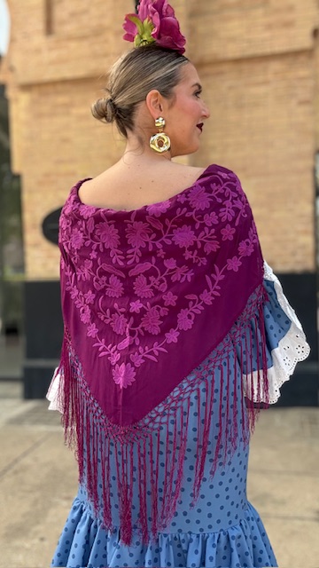 Mantón bordado en color buganvilla con flecado largo.
