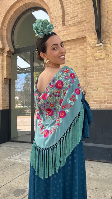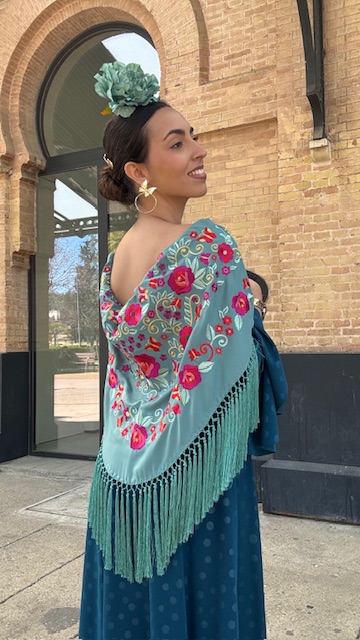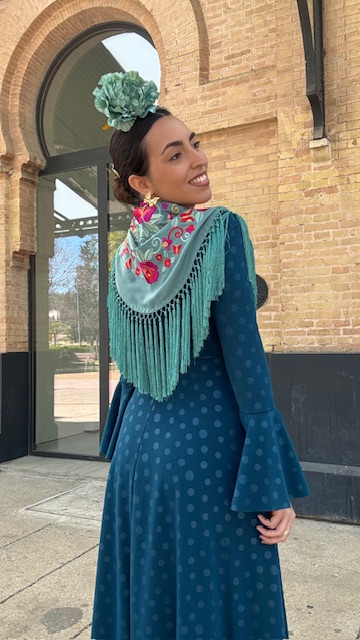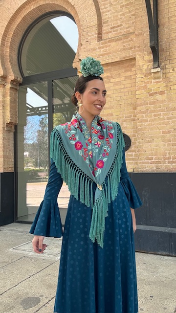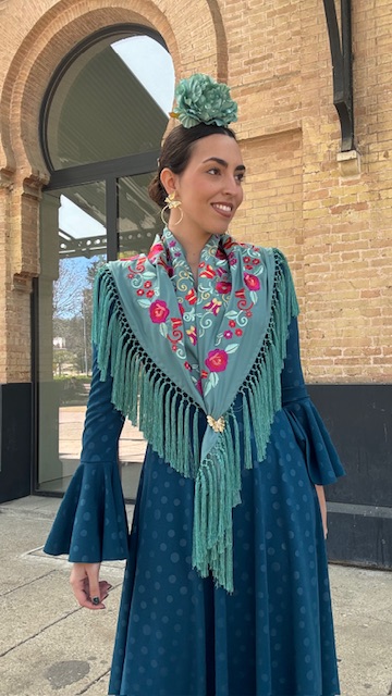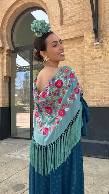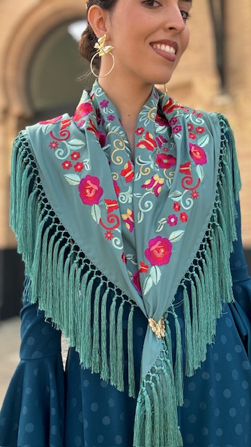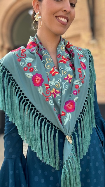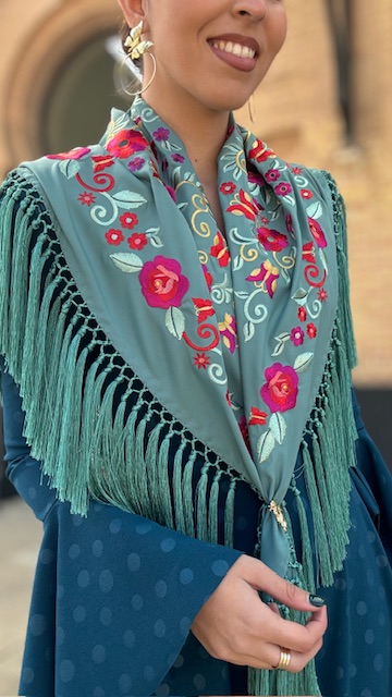 Mantón Bordado Tango Verde Jabonoso