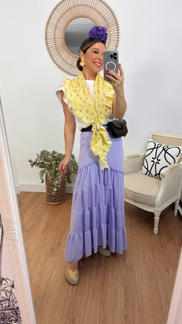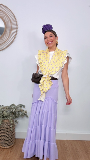 CompararMantoncillo piquillo con fondo de color amarillo suave con lunares en color malva. Tamaño único.