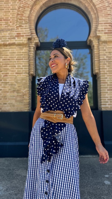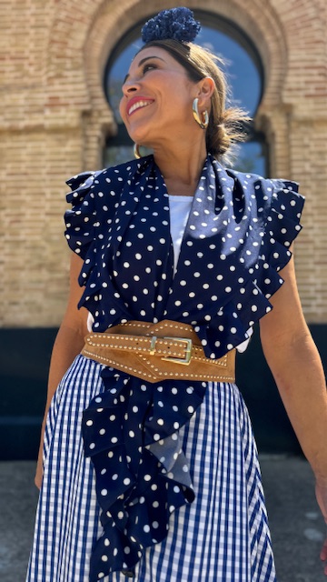 Mantoncillo piquillo en color azul marino con lunares blancos. Tamaño único.