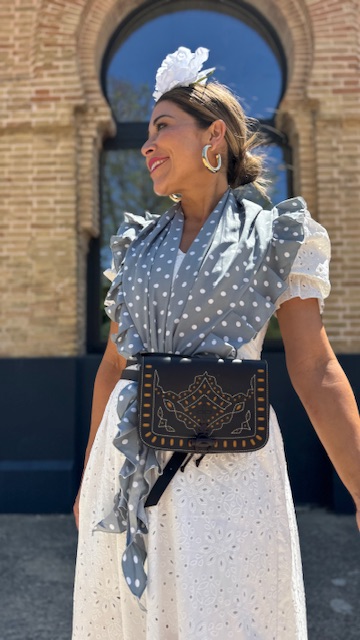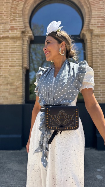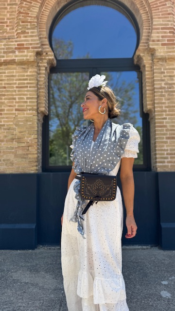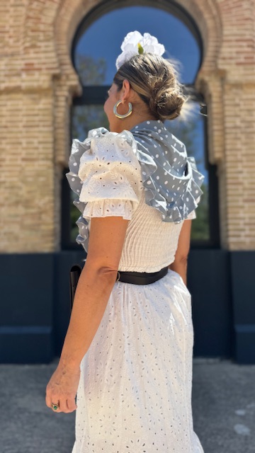 Mantoncillo piquillo en color gris con lunares blancos. Tamaño único.