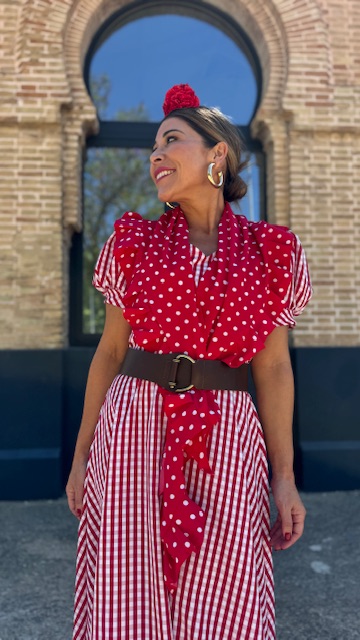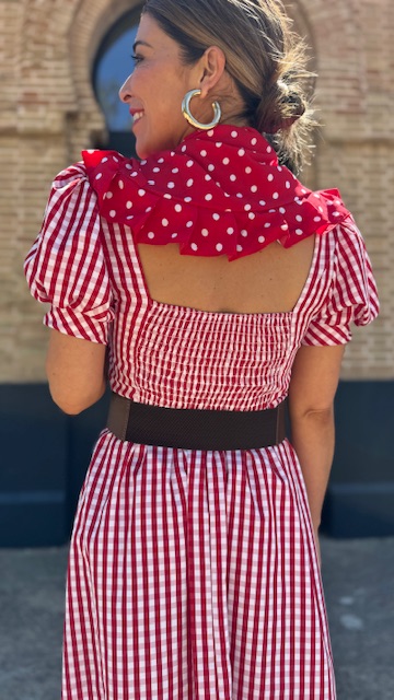 Mantoncillo piquillo en color rojo con lunares blancos. Tamaño único.