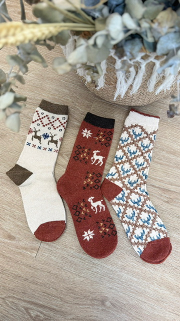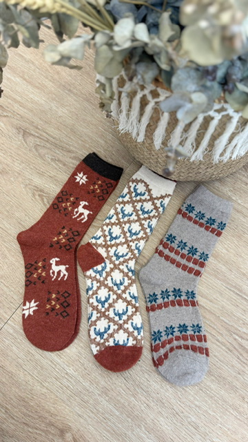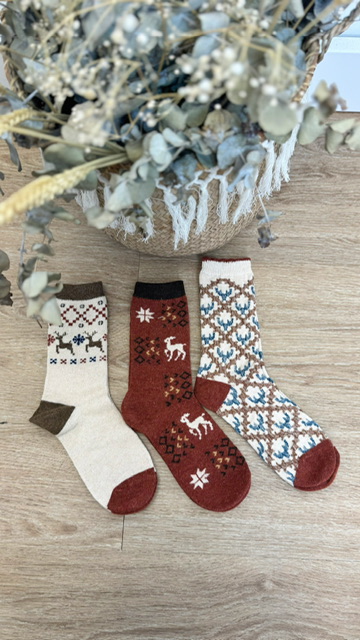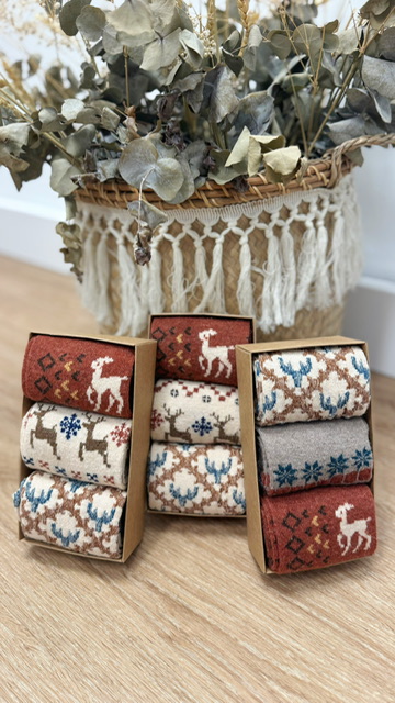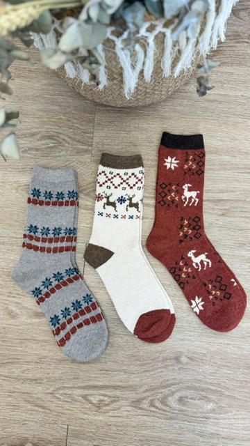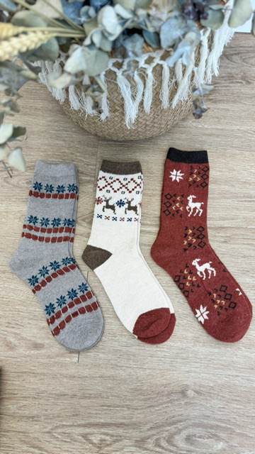 Pack de 3 calcetines con estampado navideños. En el pack de 3 calcetines varia el modelo. 75% WOOL 20% ANGORA 5% SPANDEX