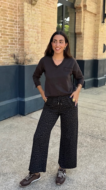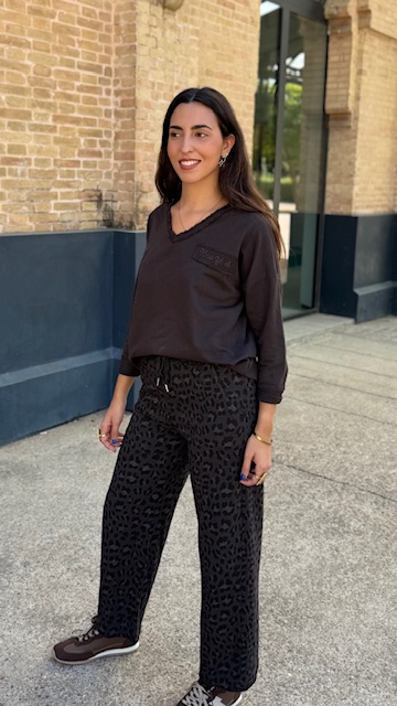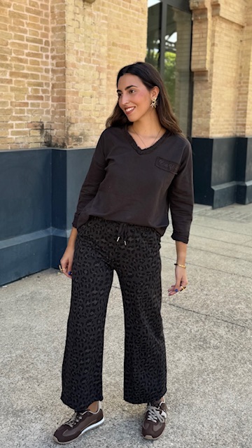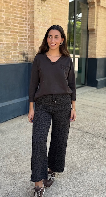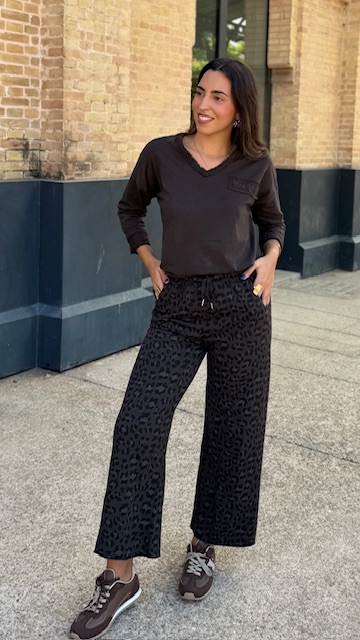 Pantalón con cinturilla elástica con estampado animal print. Talla única válida desde la 36 hasta la 40.