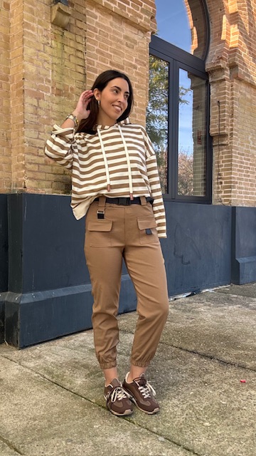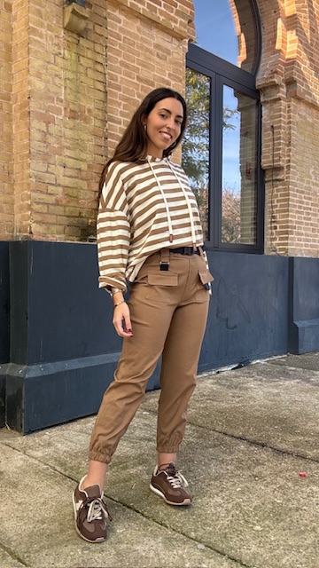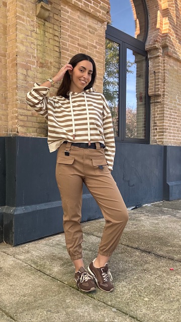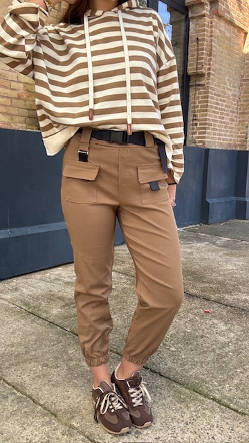 Pantalón tipo cargo con bolsillos delanteros en color camel .Talla única válida desde la 36 hasta la 40/42. lleva cinturón incluido.