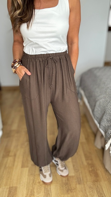 Pantalón bombacho confeccionado de tejido de viscosa con cinturilla elástica . Talla única válida desde la 36 hasta la 40.
