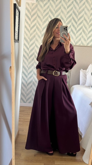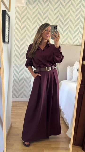 Pantalón de estilo palazzo en color berenjena con  cinturón. Queda muy bonito con cualquiera de nuestras camisas o jerséis.