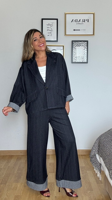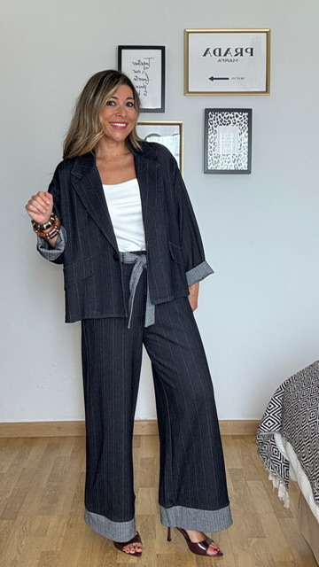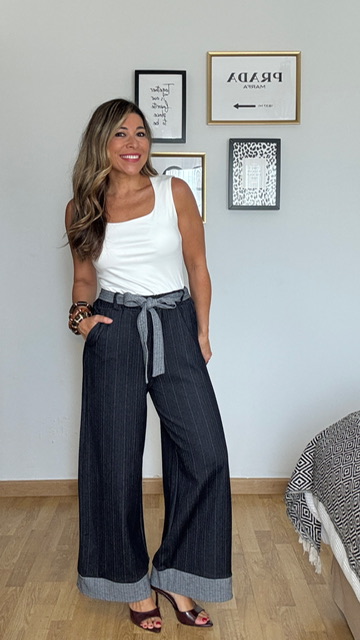 Pantalón con cinturón denim con vuelta en el dobladillo. Talla única desde la 36 hasta la talla 44.