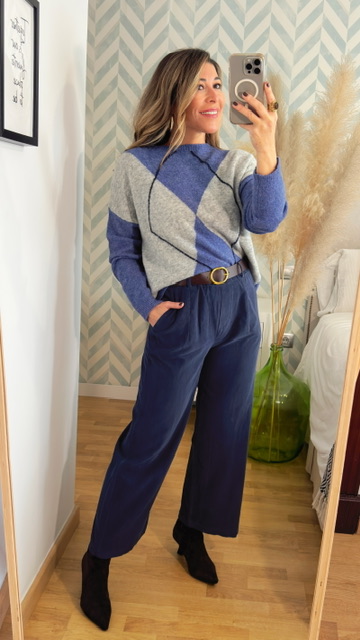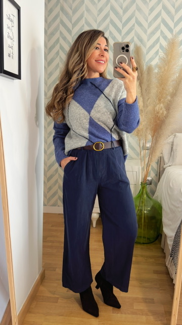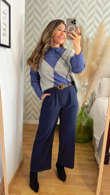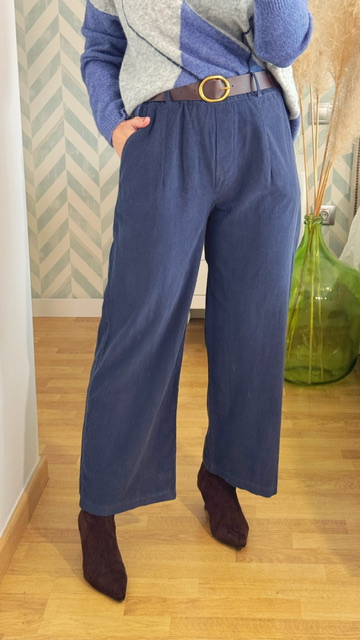 Pantalón culotte de micropana con cinturón en color azul marino. Talla única válida desde la 36 hasta la 40/42.