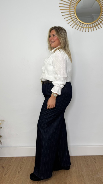 Pantalón denim elástico con cinturilla elástica. Talla única válida desde la 38/40 hasta la 44. Lleva cinturón incluido.