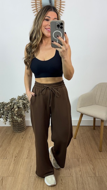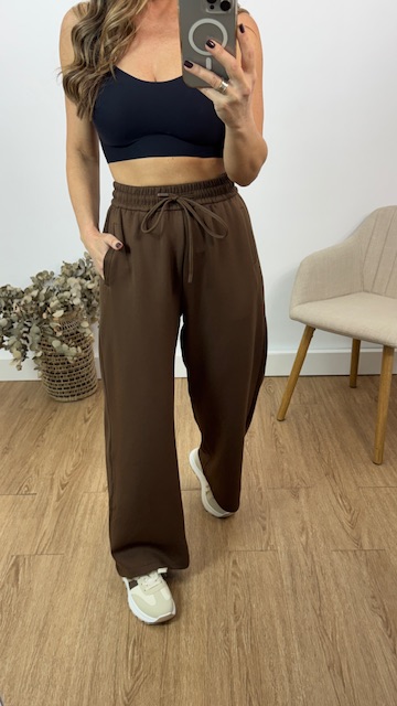 Pantalón deportivo con cinturilla elástica de algodón en color marrón. Disponible por tallas.