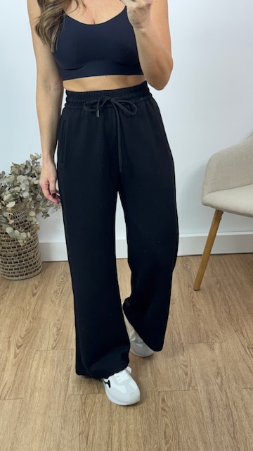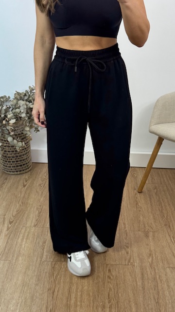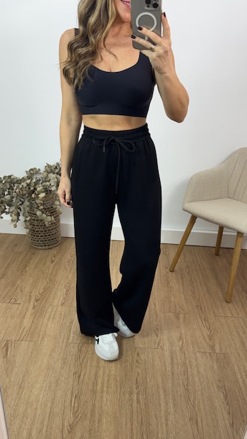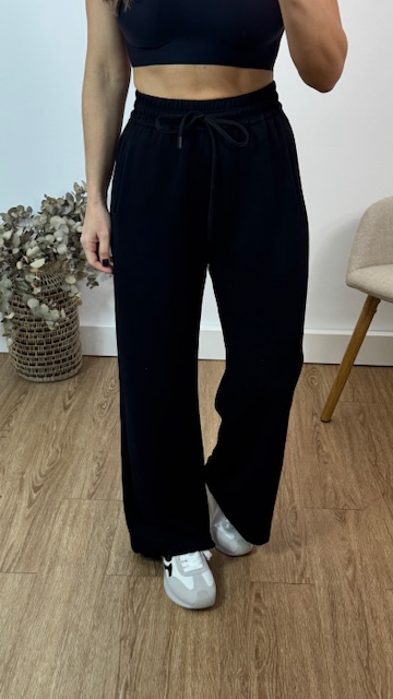 Pantalón deportivo con cinturilla elástica de algodón en color negro. Disponible por tallas.