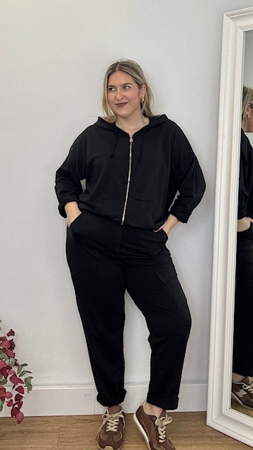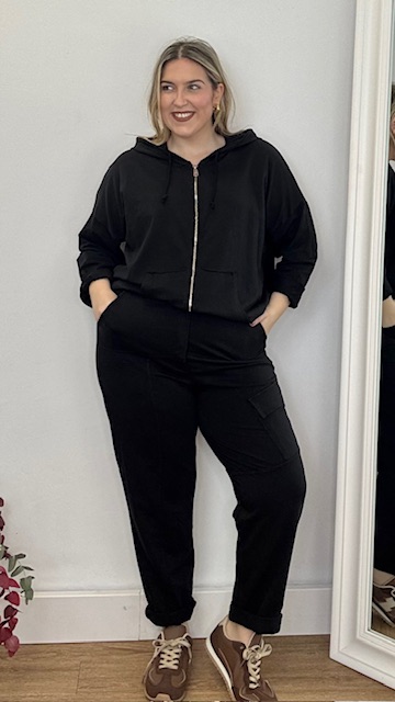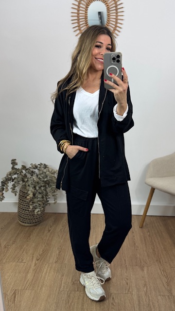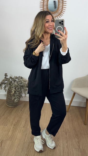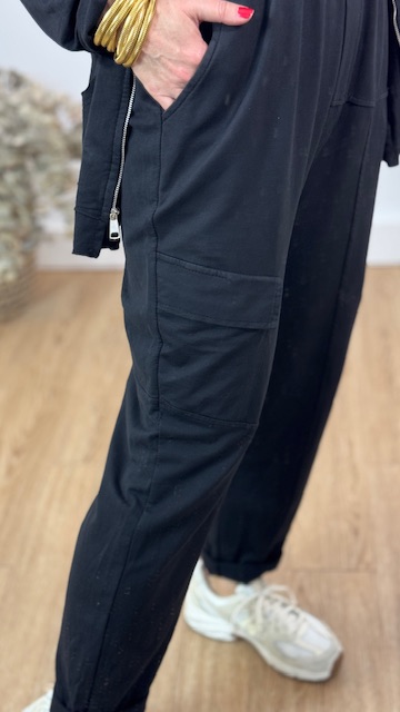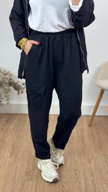 Pantalón deportivo confeccionado en algodón con bolsillos en color negro. Talla única válida desde la 36 hasta la 44/46.