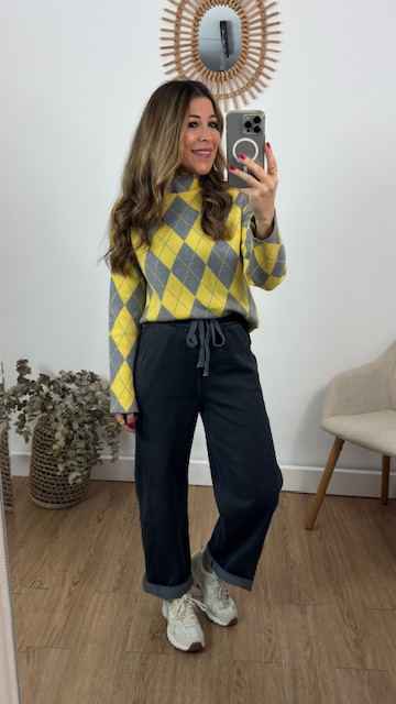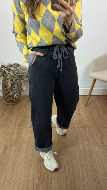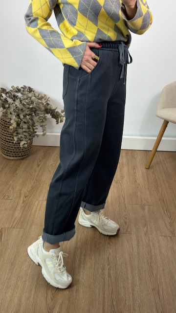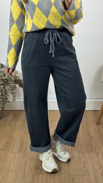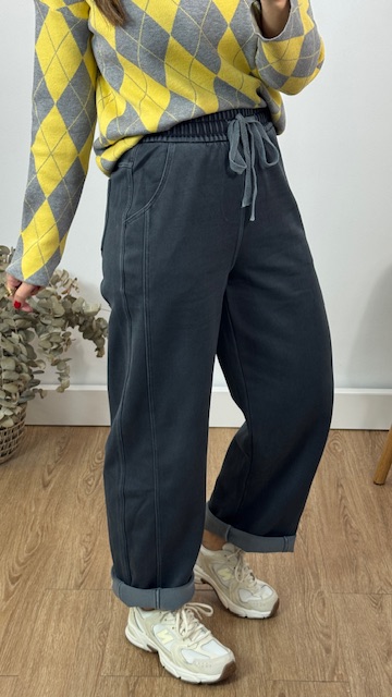 Pantalón deportivo denim confeccionado en tejido de algodón en color gris. Disponible por tallas.