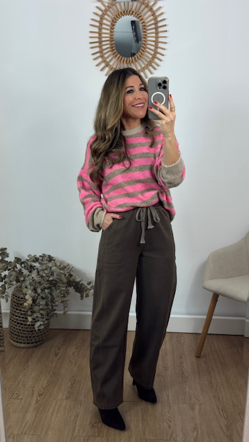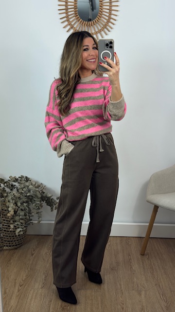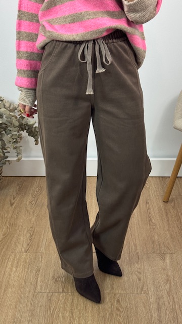 Pantalón deportivo denim confeccionado en tejido de algodón en color marrón. Disponible por tallas.