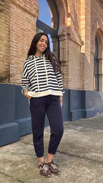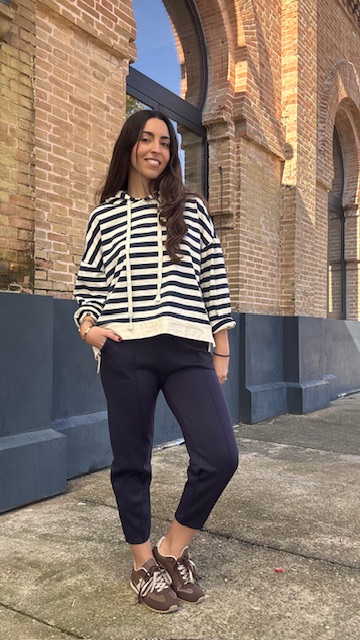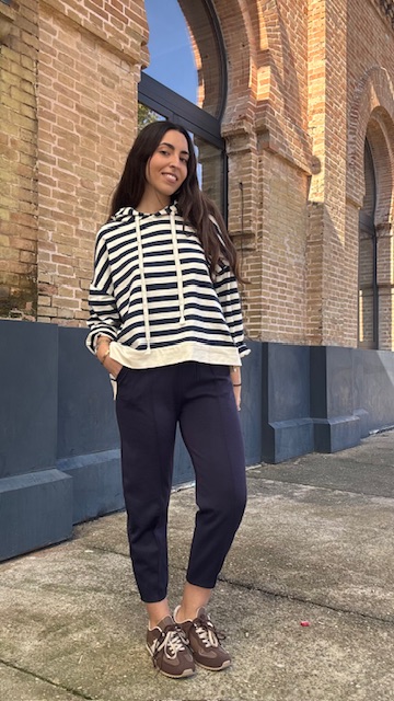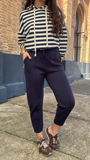 Pantalón deportivo tipo globo con ribete delantero en color azul marino. Talla única válida desde la 36 hasta la 42/44.