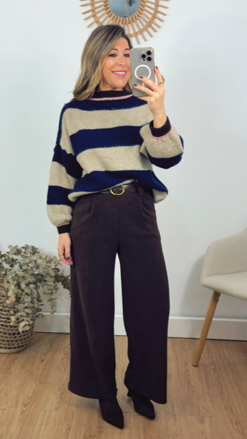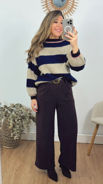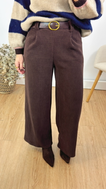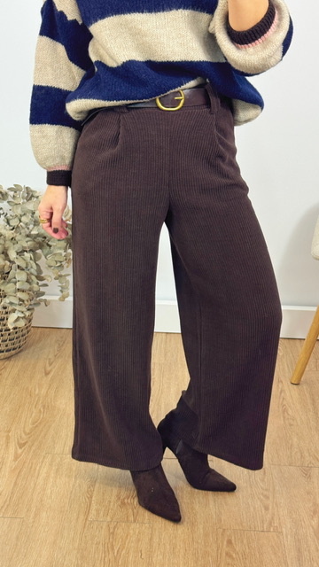 Pantalón confeccionada en tejido de pana con cinturón en color marrón. Talla única válida desde la 36 hasta la 42.