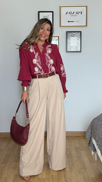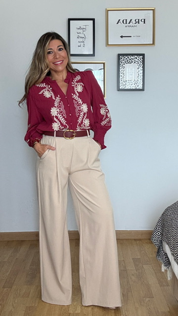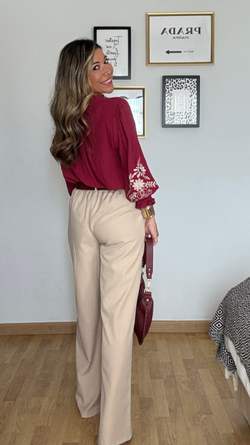 Pantalón de pinzas en color beige. Talla única válida desde la 36 hasta la 40.