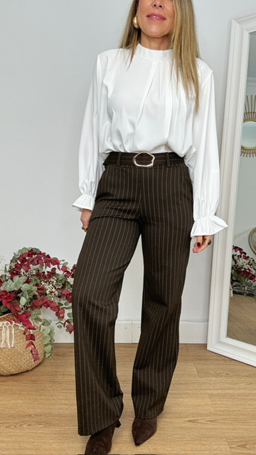 Pantalón punto roma con rayas diplomáticas en color marrón. Disponible por tallas.