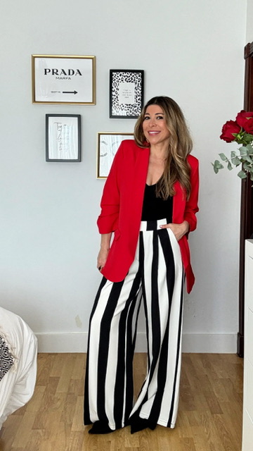 Pantalón de rayas en blanco roto y negro con bolsillo y cinturilla elástica en la parte posterior. Lleva bolsillos. Talla única.