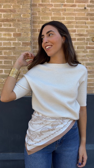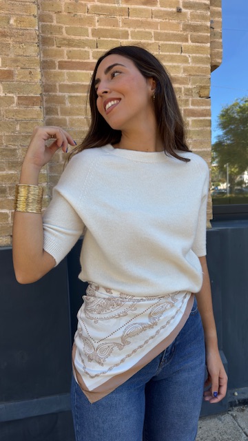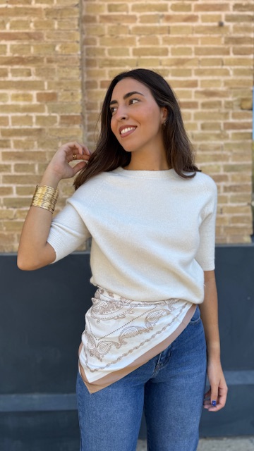 Pañuelo en color beige con estampado.