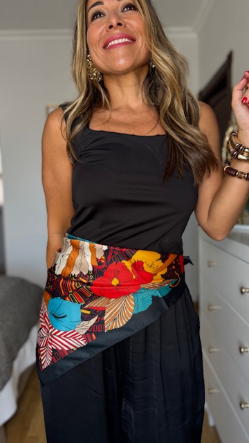 Pañuelo confeccionado en tejido de 100% poliéster con estampado de flores.