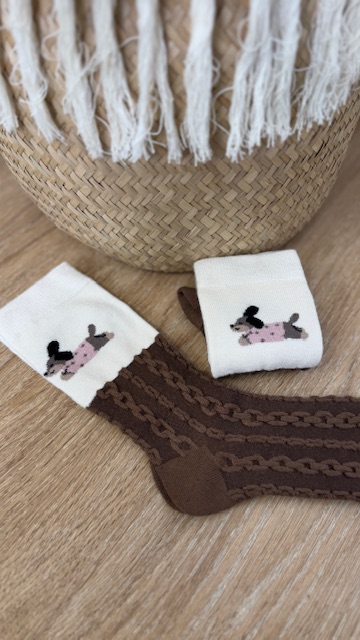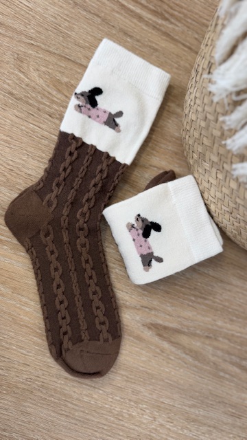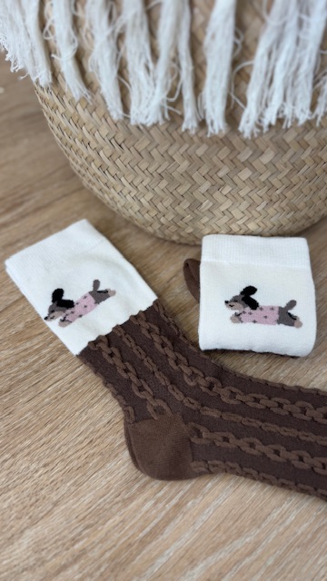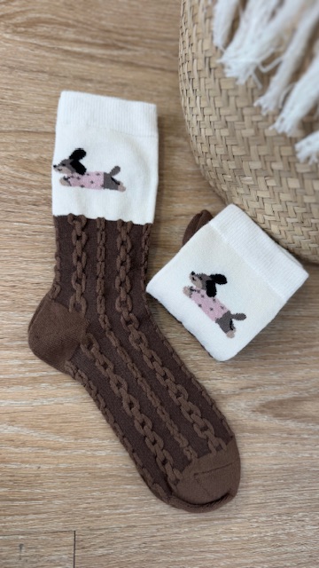 Par de calcetines de color marrón con dibujo y trenzado. Da talla de la 35 hasta la 40.