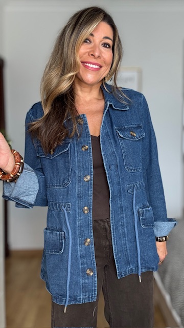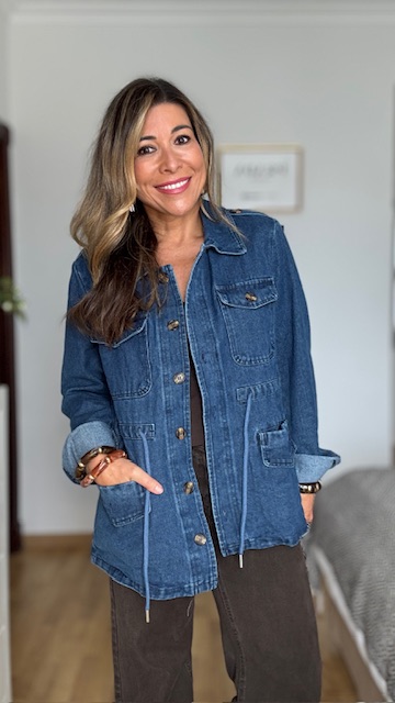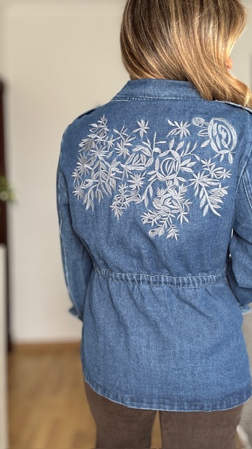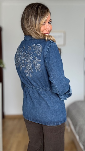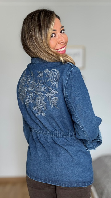 Parka confeccionada en tejido denim con espalda bordada. Disponible por tallas SML