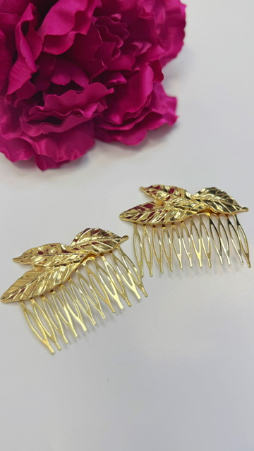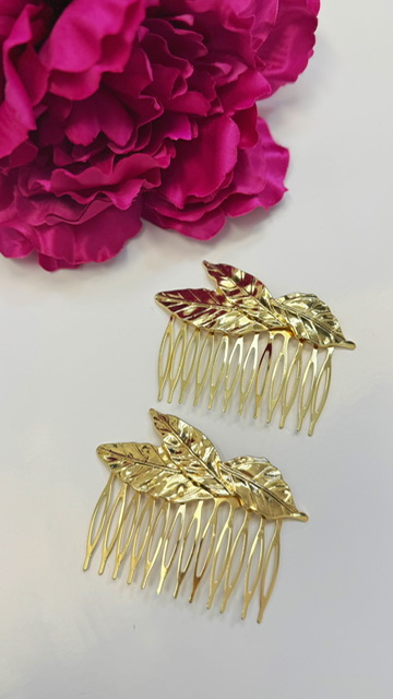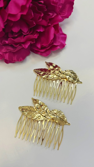 Peinecillo con forma de hojas en color dorado. 100% METAL. Se venden por unidades.