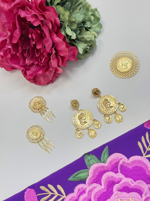 Peinecillo con forma de moneda en color dorado. 100% METAL.Se venden por unidades.