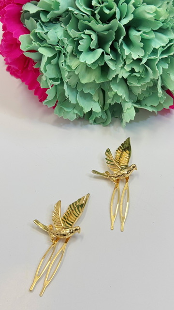 Peinecillo con forma de pájaro en color dorado. 100% METAL. Se venden por unidades.