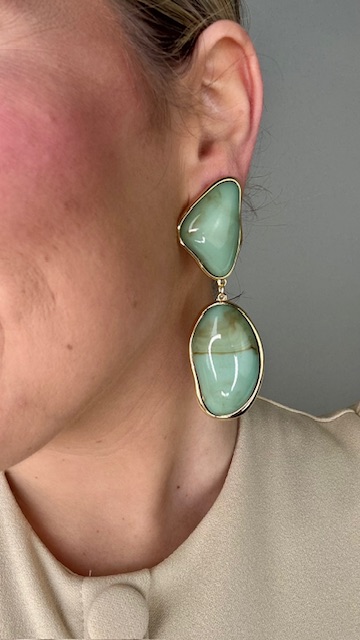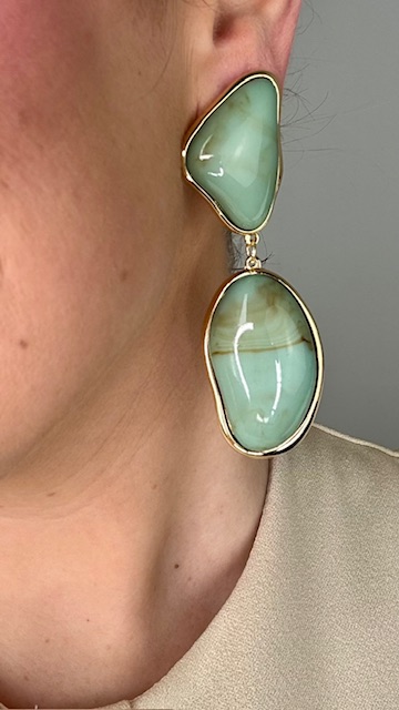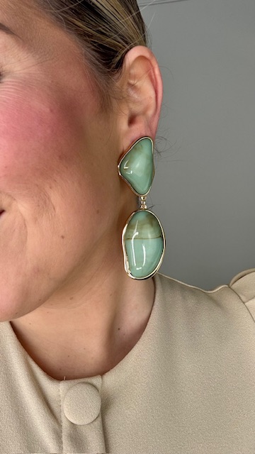 Pendientes con forma geométrica en dorados con perlas en aguamarina .40%ZINC+60%RESINA.