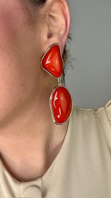 Pendientes con forma geométrica en dorados con perlas en coral.40%ZINC+60%RESINA.