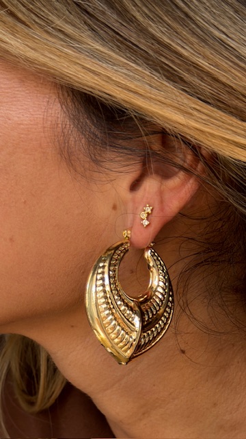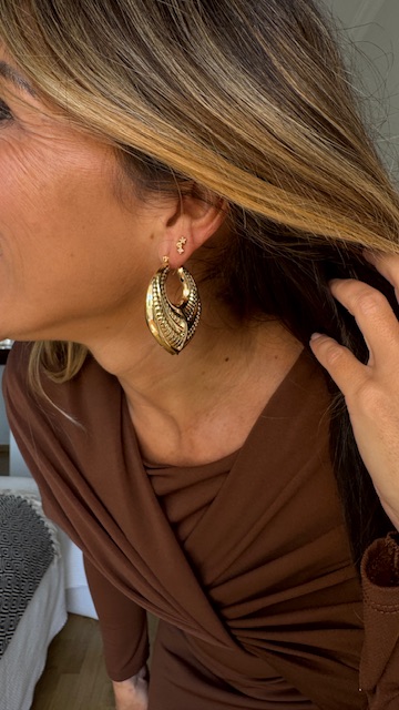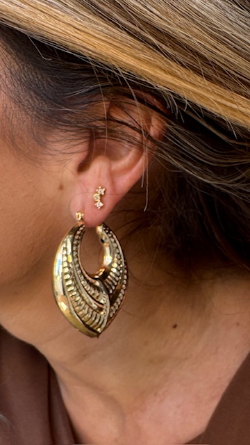 Pendientes de argolla labrados en color dorado, van huecos por dentro para que no pesen.