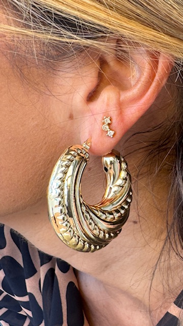 Pendientes de argolla labrados en color dorado, van huecos por dentro para que no pesen.