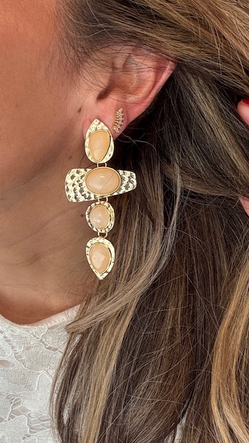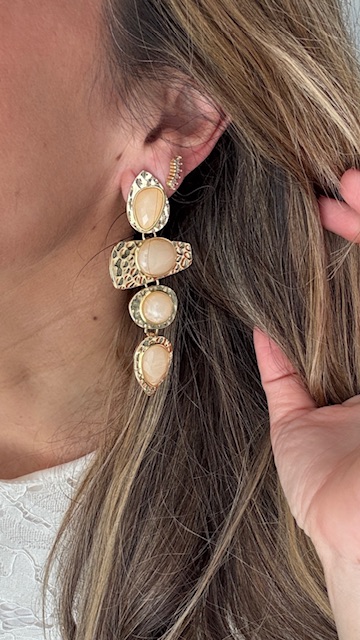 Pendientes en forma de lágrima en dorados con perlas en beige.50% alloy + 50% resin.