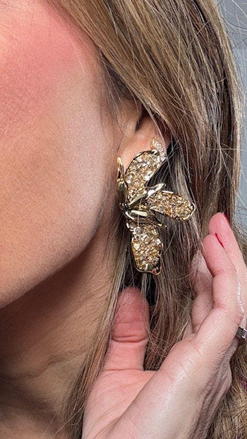 Pendientes con forma de flor en color dorado oscuro con relieve. No son metálicos.