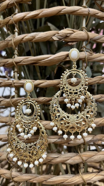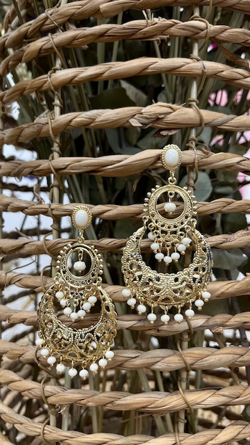 Pendientes dorados con detalles en color beige.Perfecto para combinar Vestido Flamenca Abril Rojo
