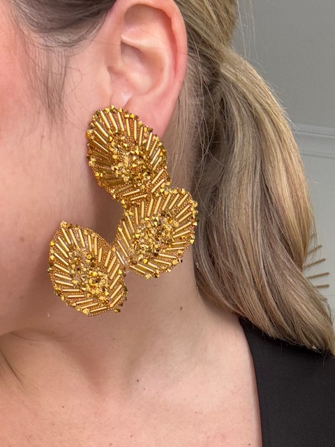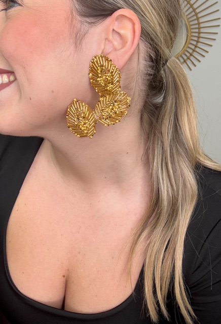 Pendientes de pasamanería con detalles en dorado. No pesan.